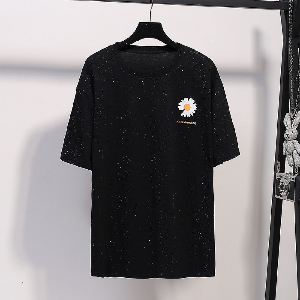 Extra-Plus Size Women's Summer New Fat Loose Sequined Small Daisy Print Short-Sleeved T-Shirt