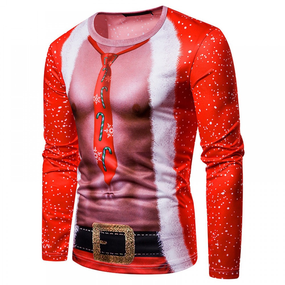 New 3D Personality Printing Fashion Men's Christmas Santa Pattern Long-Sleeved T-Shirt