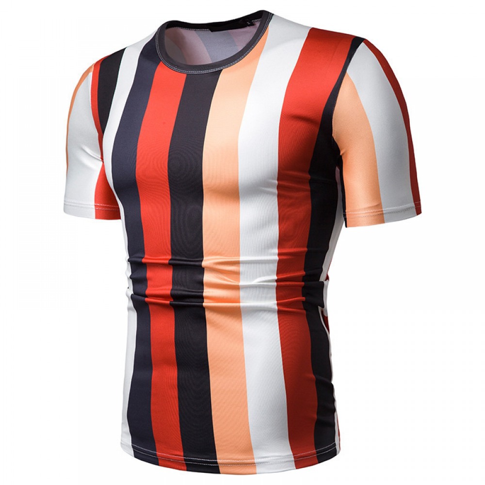 New Summer Men's Short-Sleeved T-Shirt Mens Contrast Striped Slim Casual T-Shirt