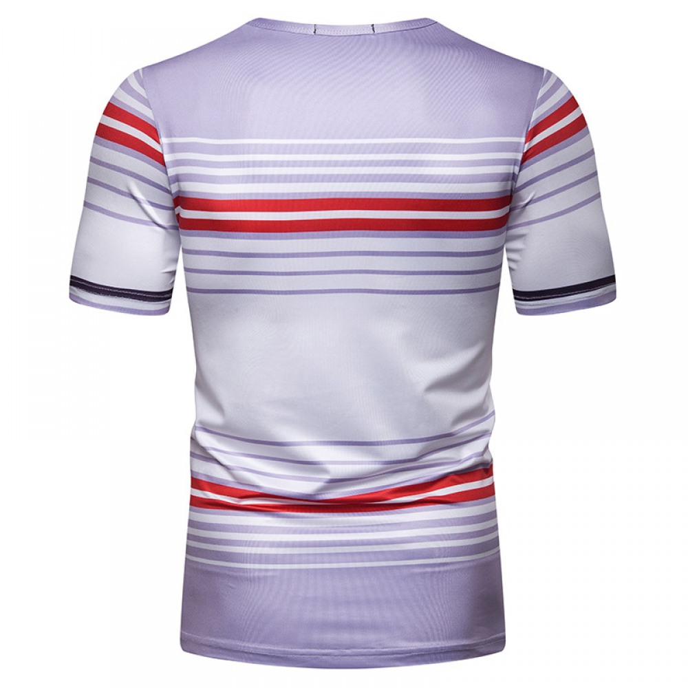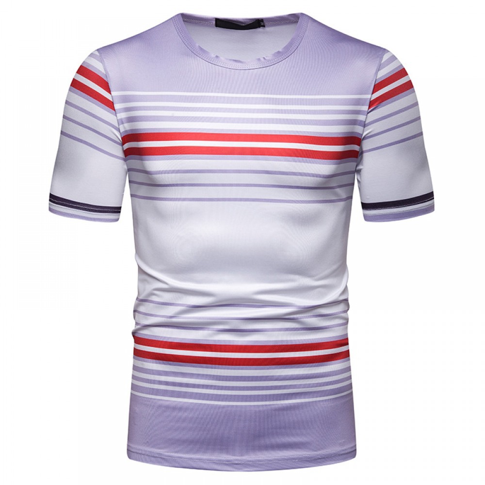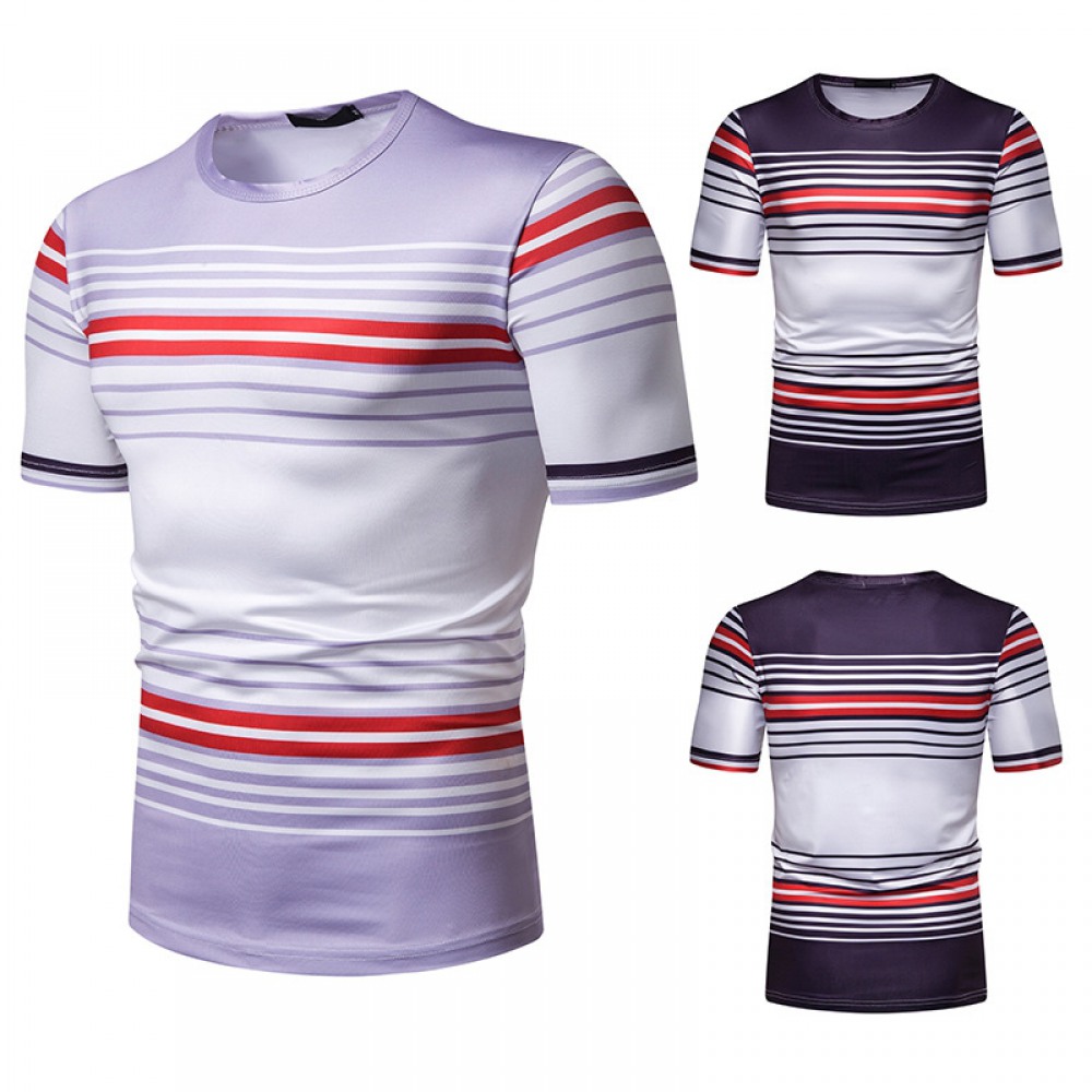 New Summer Men's Short-Sleeved T-Shirt Mens Contrast Striped Slim Casual T-Shirt