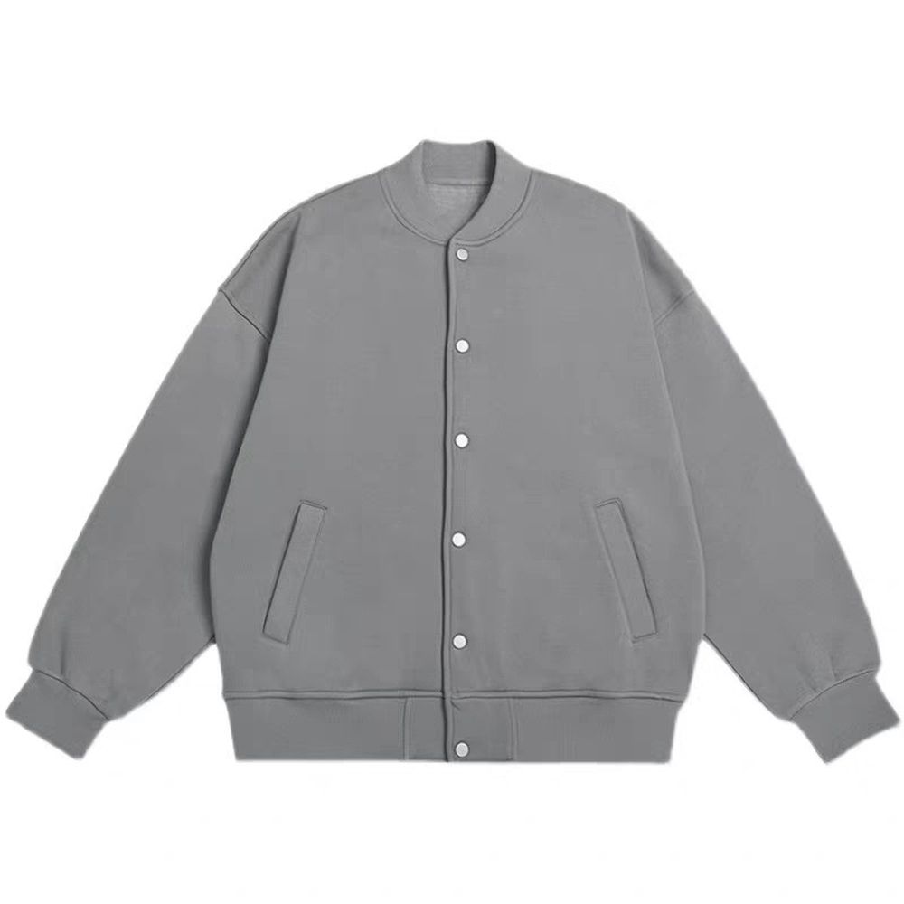Solid Color Baseball Jacket For Boys Loose Style Casual Jacket