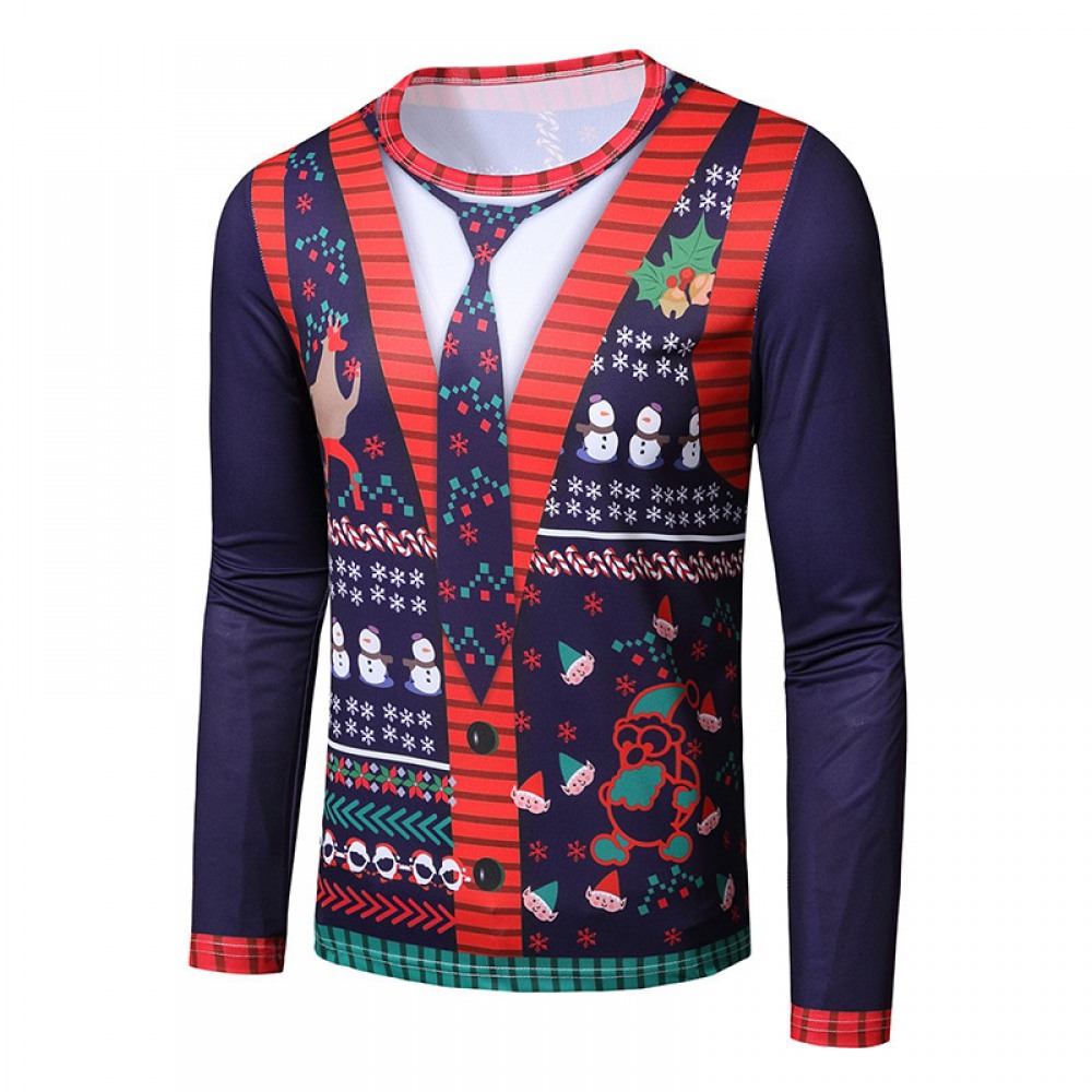 New 3D Personality Printing Fashion Men's Christmas Long Sleeve T-Shirt