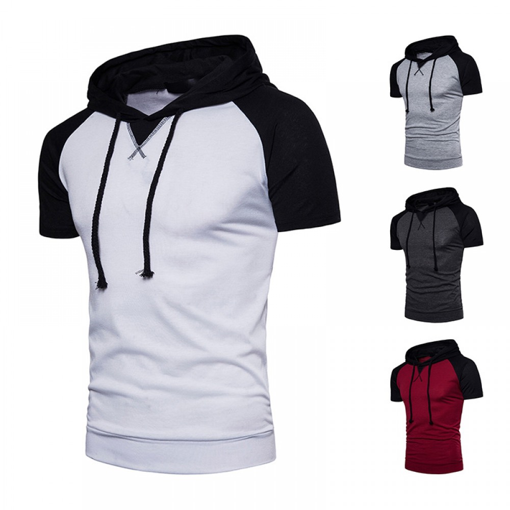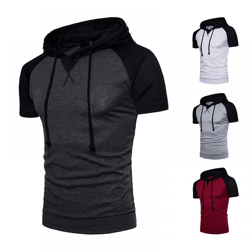 New Men's Raglan Sleeve Design Plus Size Hooded Short Sleeve T-Shirt