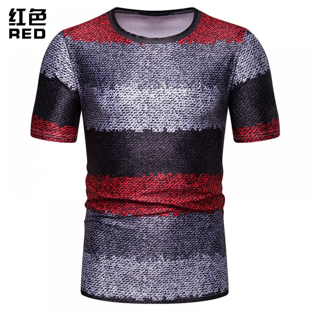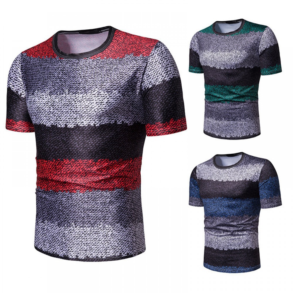New Summer Men's Short-Sleeved T-Shirt Mens Contrast Striped Slim Casual T-Shirt