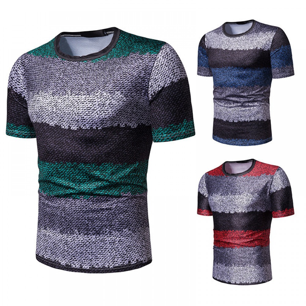 New Summer Men's Short-Sleeved T-Shirt Men's Contrast Striped Slim Casual T-Shirt